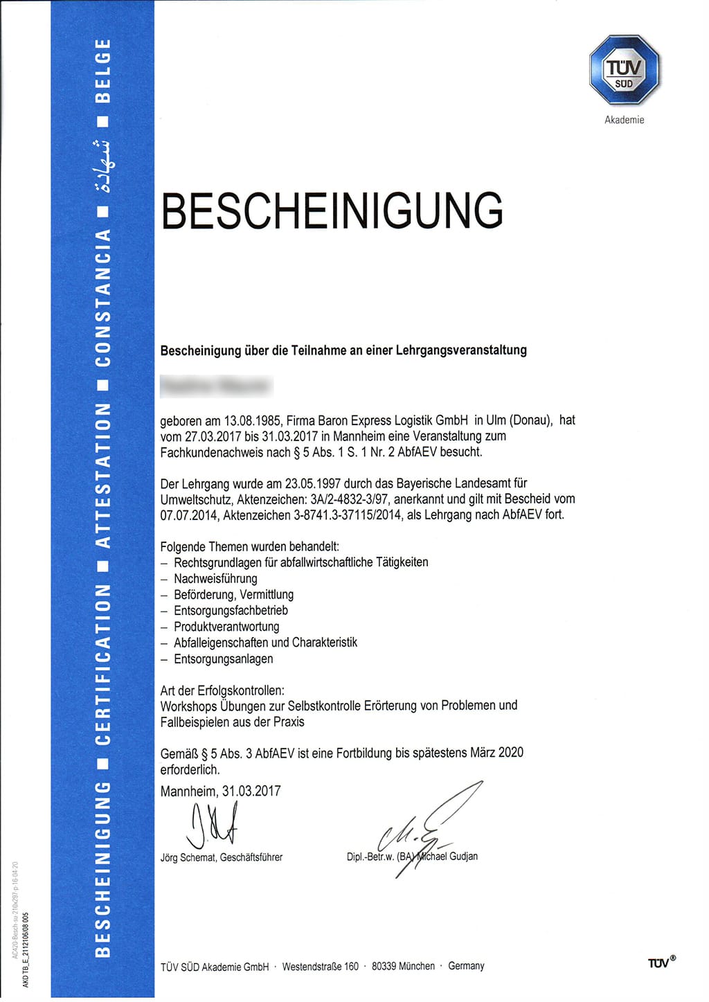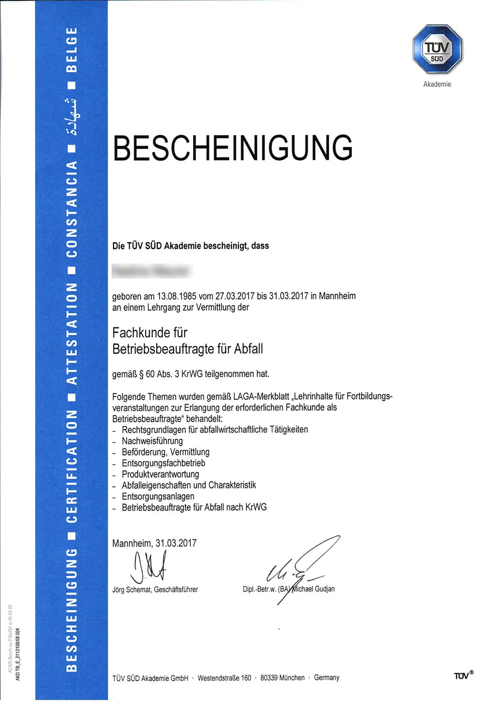 - Zertifiziert durch den TÜV SÜD gemäß §60 Abs. 3 KrWG